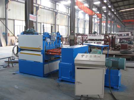 本機床為輥式金屬板料整平專用設備,通常由動力、主機和電器控制等部分組成。利用多輥工作原理,使板料在上、下校平輥之間反復變形,消除應力,達到校平的目的。在上、下排工作輥外側,設剛性支撐輥(輪),構成四重式組輥結構。板料通過本機校平,可明顯改善其平整狀態,提高工作的質量。可獨立工作,用于單塊板材的校平;亦可在本機前配置開卷、引料,后面配置剪切、垛料及聯機機構等,通過控制系統連成性能完備的生產線,對金屬卷材進行整平、分切。